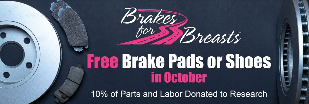 Get FREE brake pads or shoes with any brake service during our Brakes for Breasts campaign.